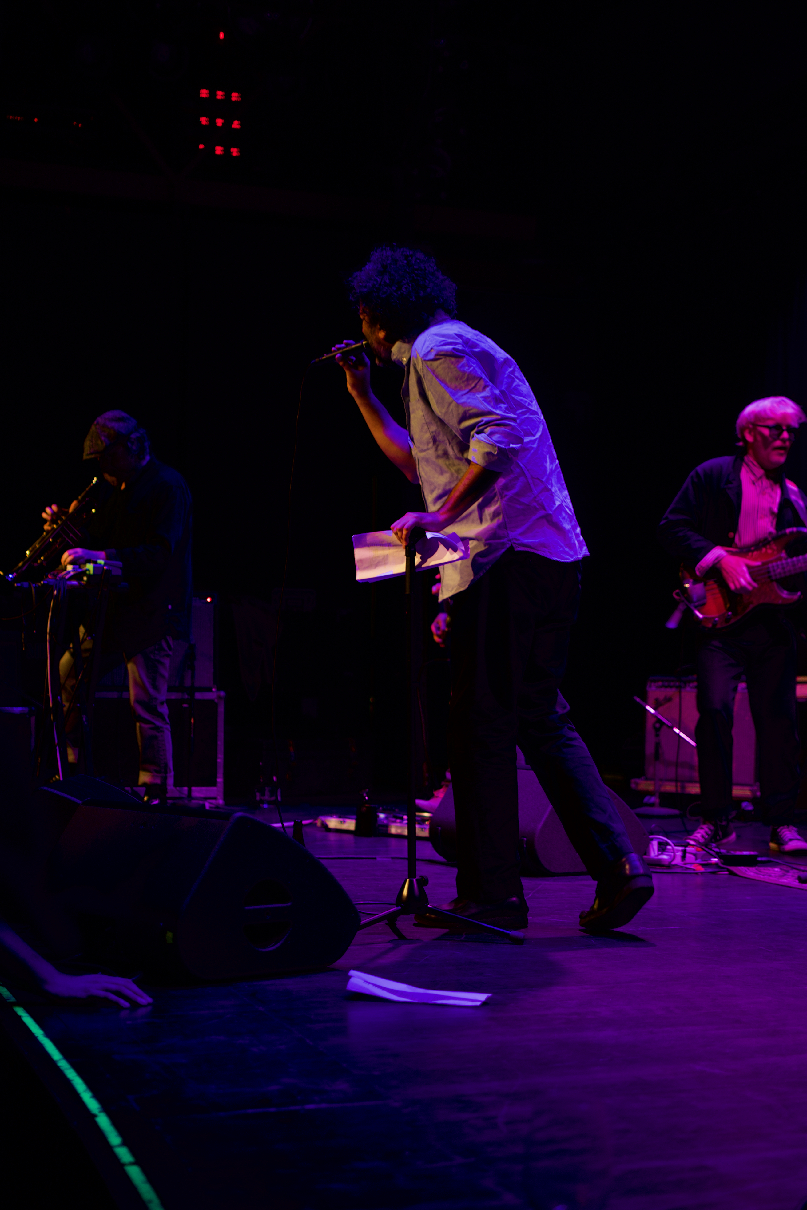 Bejar själv är en säregen uppenbarelse. Han kommer ut på scenen med en bunt papper i bakfickan. Inte helt olik en universitetsföreläsare, komplett med löst sittande skjorta och skäggstubb. Pappren i fickan visade sig vara texten till en spoken-word-del i låten “Tintoretto, it’s for you”, en höjdpunkt från den senaste skivan “Labyrinthitis”. Ungefär halvvägs in i låten drar  han upp pappren ur fickan och släpper dem på scengolvet i takt med att han läser ut dem. När papprena är slut tittar Bejar ner i golvet, sätter sig på huk och väntar in låtens slut som en solist vars avtalade tid tagit slut.