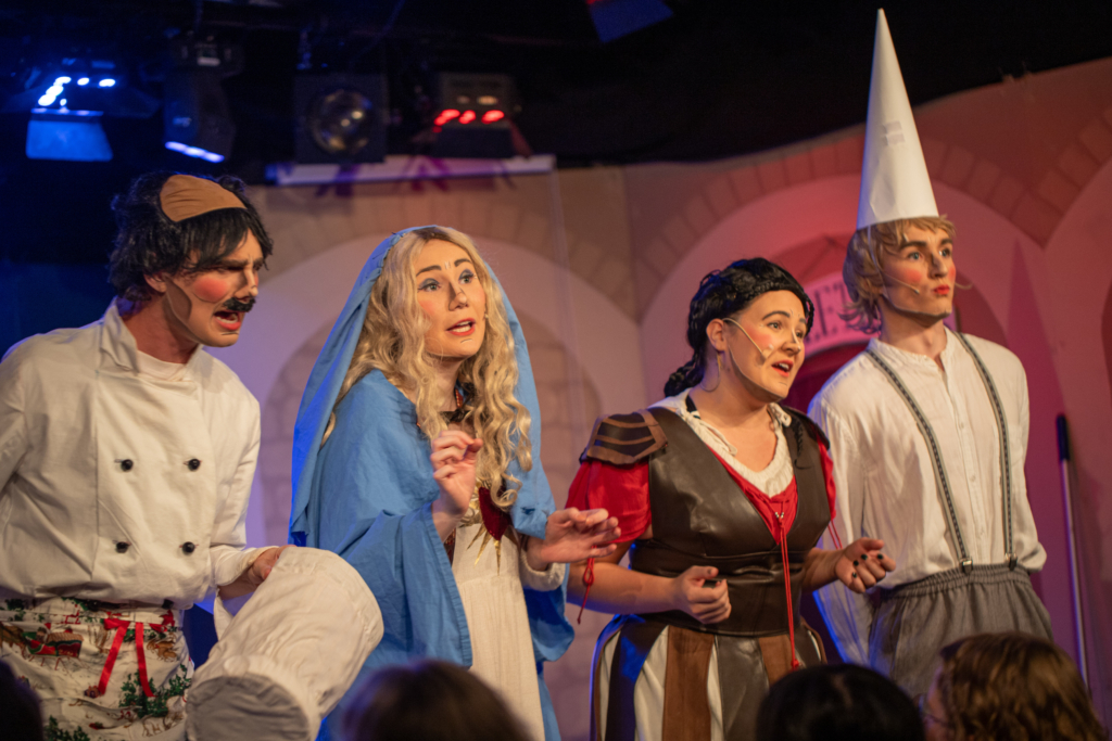 När ridån går upp till andra akten inleds det med en sörjande åsna – och plötsligt gör en ond jultomte entré tillsammans med Satan själv. Ett militäriskt bootcamp följer och den röda tråden är sedan länge borta. Det blir allt mer förvirrande ju längre uppsättningen pågår. Ett spex måste inte ha en strikt struktur – det är trots allt spex – men här hade publiken behövt lite mer vägledning genom narrativet.