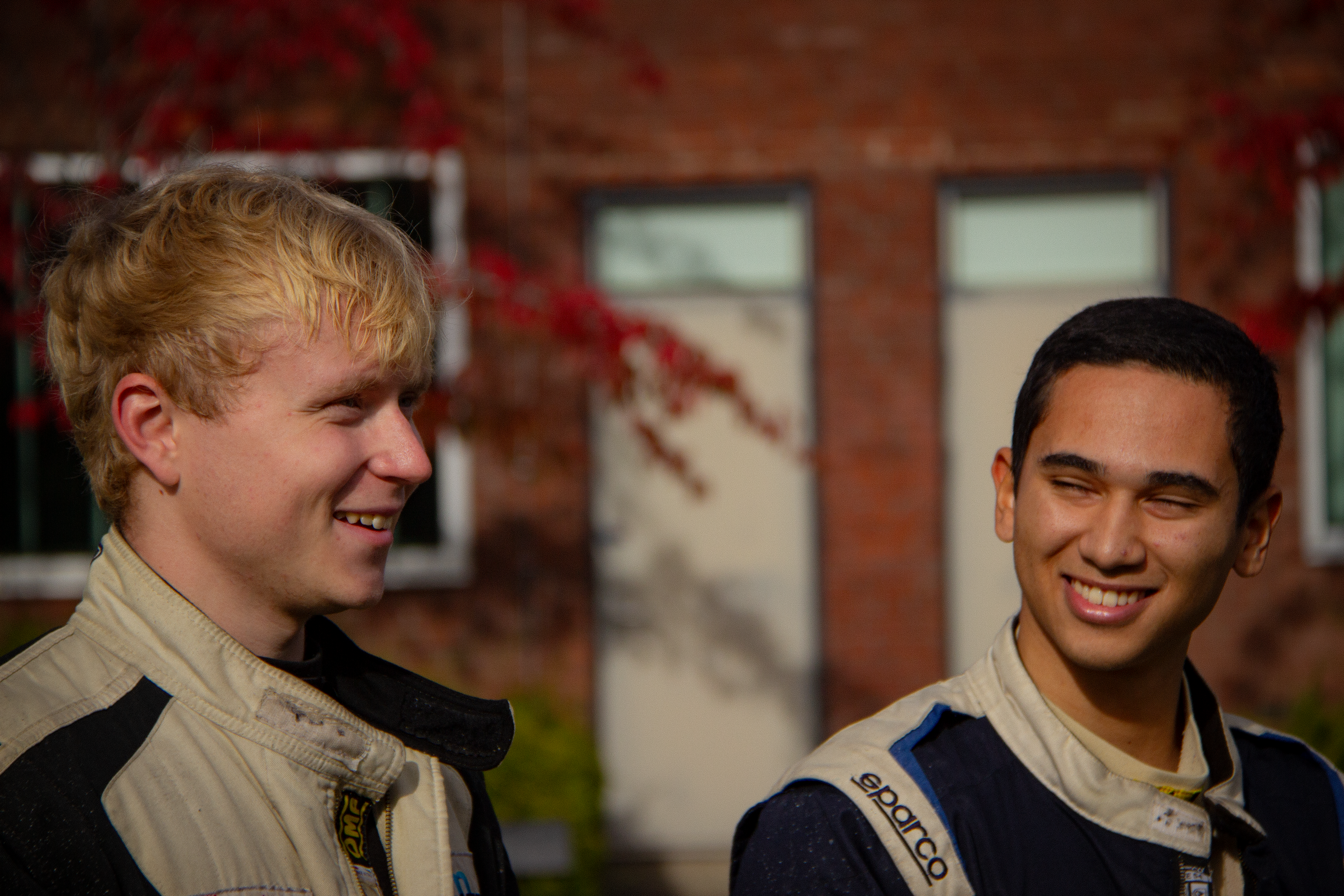 Patric Håkansson och Luke Rakic Cowie är förare. Det är de som snurrar runt i det lilla blå fordonet och showar för publiken. Utöver att köra har båda andra uppdrag i föreningen. Patric jobbar med monocoquen, en sorts cylinder i kolfiber som den här sortens bilar har istället för separat bottenplatta och kaross. Luke är ansvarig för teamet som jobbar med hjulupphängning och styrning.