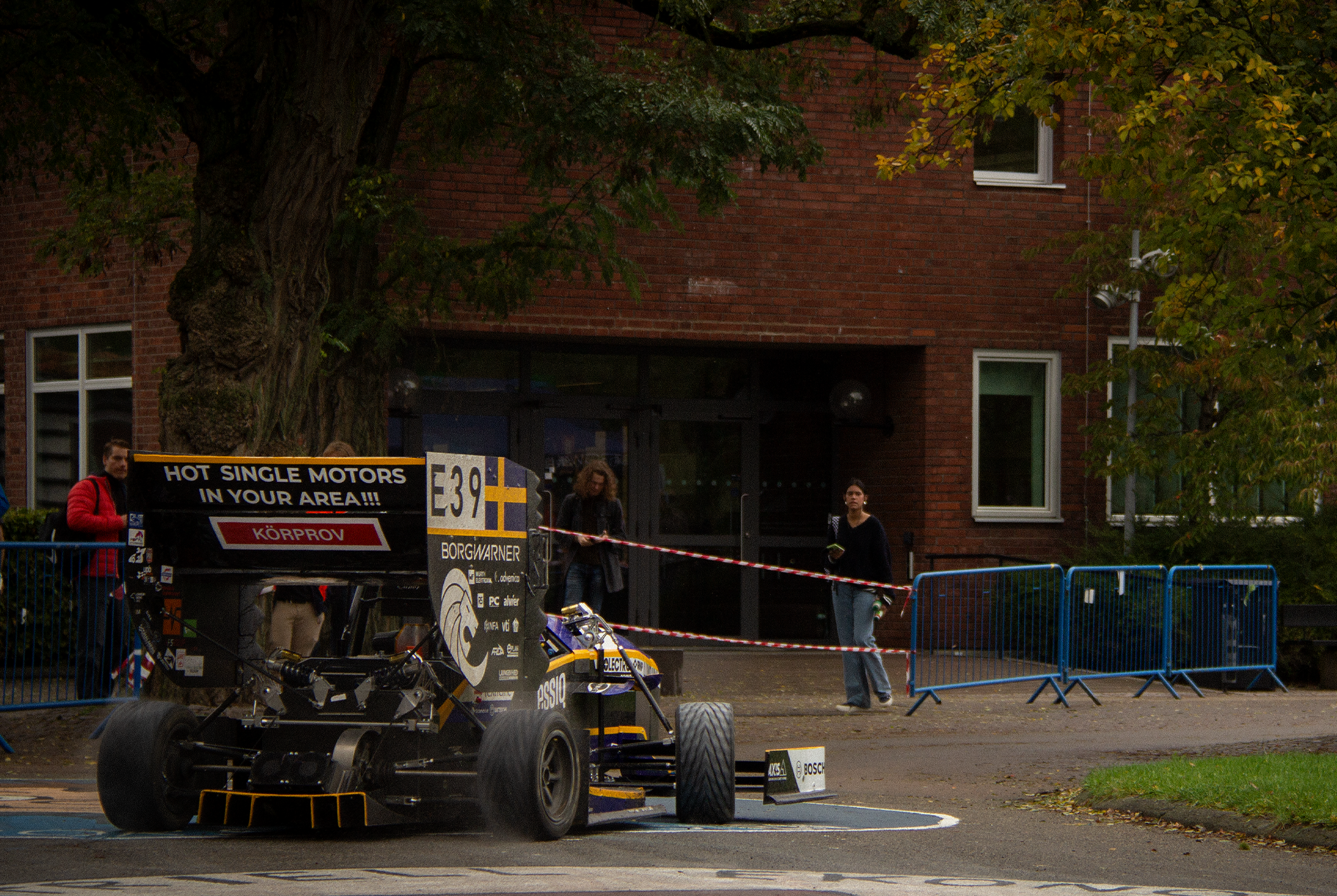 Utanför Matteannexet är vägen avspärrad. Lukten av bränt gummi sticker i näsan. Lund Formula Student (LFS) visar upp förra årets bil. Döpt efter Basshunters dänga och sin elmotor snurrar bilen Elinor runt på asfalten. Hjärtat sätter sig i halsgropen varenda gång bilen viner förbi ett av träden eller åskådarna.