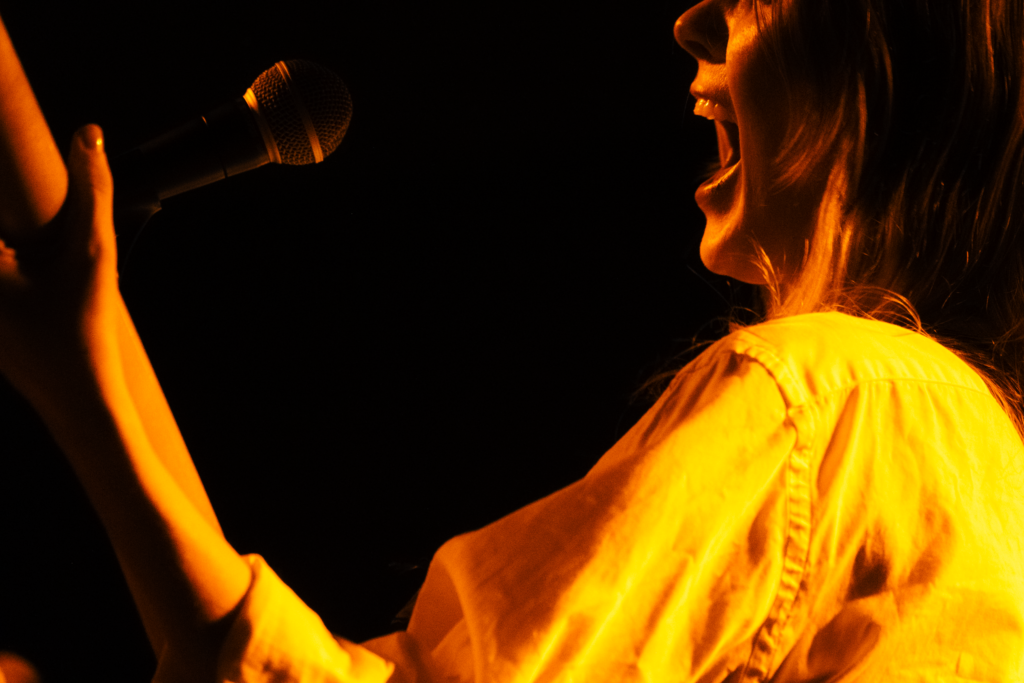 Sagt och gjort. Publiken sätter sig ner på golvet. För de flesta sker det för att Moa bad oss om det, för andra eftersom rädslan att vara den sista kvar att stå upp börjar komma ikapp.