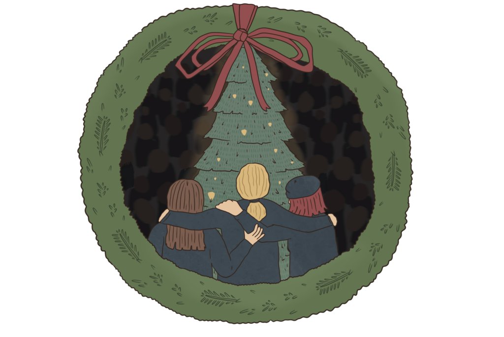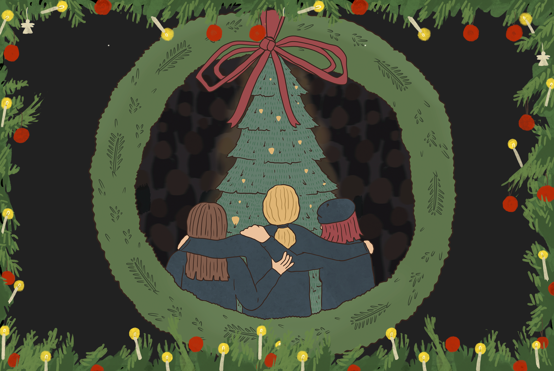 “Jag måste medge att detta spektakel är mycket trevligare än vårt deppiga firande på redaktionen”, säger chefredaktören. De andra redaktörerna nickar instämmande och tittar upp mot den glittrande granen.