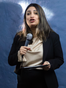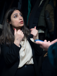 – Här börjar förfesten till maktskiftet. Nu festar vi och sen vinner vi valet, avslutar Nooshi och publiken bryter ut i applåder.