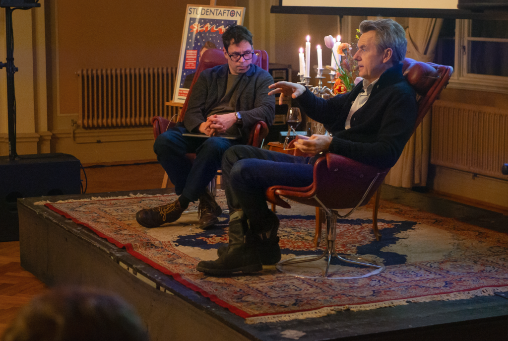 Foajén på Grand Hotel är full av minglande studenter och kön till baren ringlar sig lång. Som om det inte vore nog med självaste Skavlan är det Martin Wicklin, ännu en mediejätte, som modererar kvällens samtal Martin Wicklin är en prisbelönt journalist med ett långt CV inom branschen, men är kanske mest känd som programledare för Söndagsintervjun i P1.