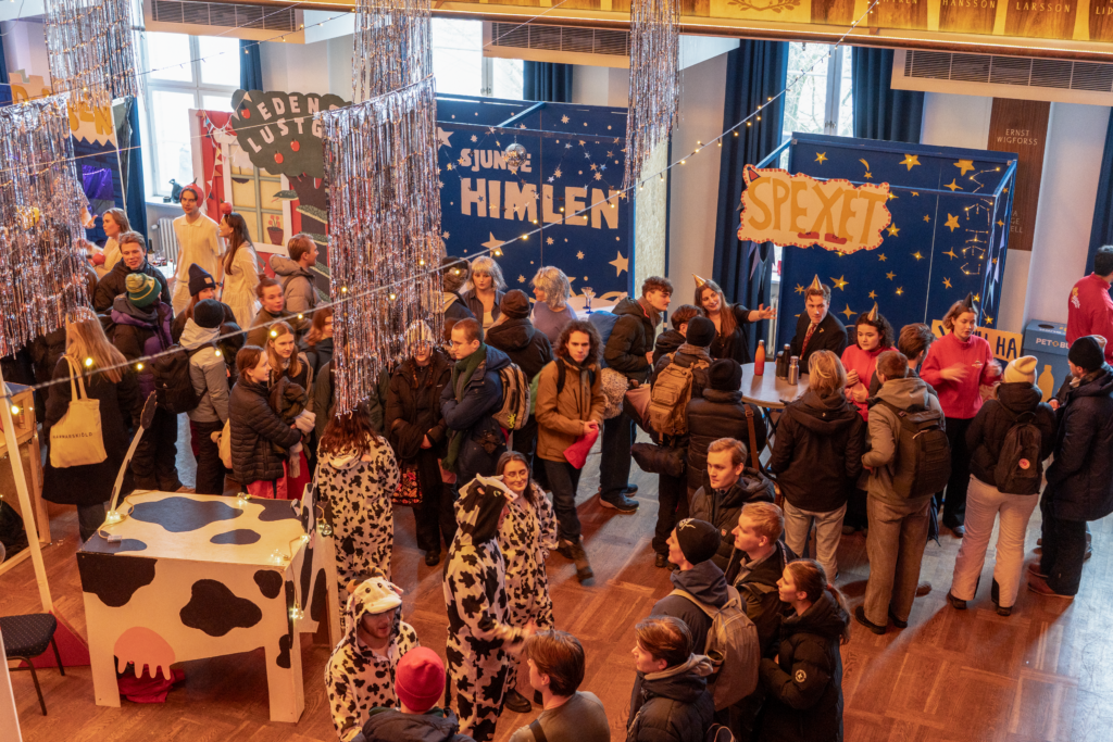 Dagens huvudattraktion var dock karnevalens olika sektioner som fick visa upp sig och rekrytera nya medlemmar. Framför kossan Liselott träffar Lundagård studenterna Hugo och Aurora som ansvarar för sektionen Kosmonauten. Själva har de varit aktiva i karnevalen sedan december men nu ser de fram emot att bjuda in karnevalister till deras krog med ko- och mjölktema.