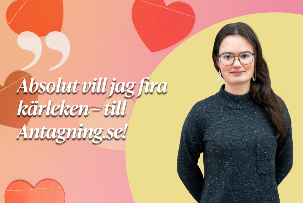 Röda rosor, nallebjörnar och hjärtformade chokladaskar har invaderat affärerna.Trots det tänker jag inte på vilken dag som stundar förrän jag får frågan om jag ska fira. Absolut vill jag fira kärleken – till Antagning.se!