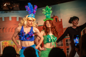 Ingen går säker från föreställningens vassa skämt och kommentarer. Alla från Måns Zelmerlöw till Lundaspexarna och AF-borgens Edil får sig en känga. Humorn träffar ofta helt rätt hos publiken, även om mängden kiss- och bajsskämt ibland blir lite väl överdrivet. Första akten är genomtänkt, rolig och engagerande, och inför varje ny scen är jag lika nyfiken på att se vad som ska hända härnäst.
