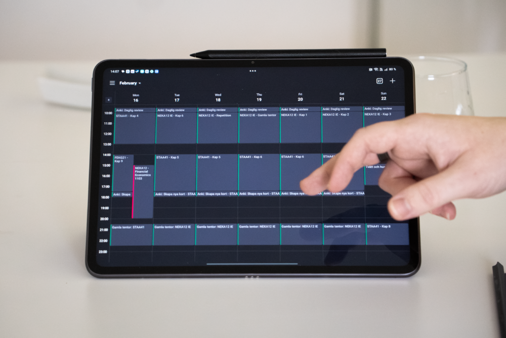 Efter två år bestämde sig Axel för för att göra en totalvändning. Han spenderade fyra timmar på att skriva ihop en prompt som ett AI-verktyg sedan använde för att skapad Axels perfekta mat- och sovschema: plugga, äta, sova, upprepa. Schemat är avgörande för att Axel Lund skall klara av de 70 hp han läser under vårterminen. Han tar fram sin surfplatta och berättar om upplägget.