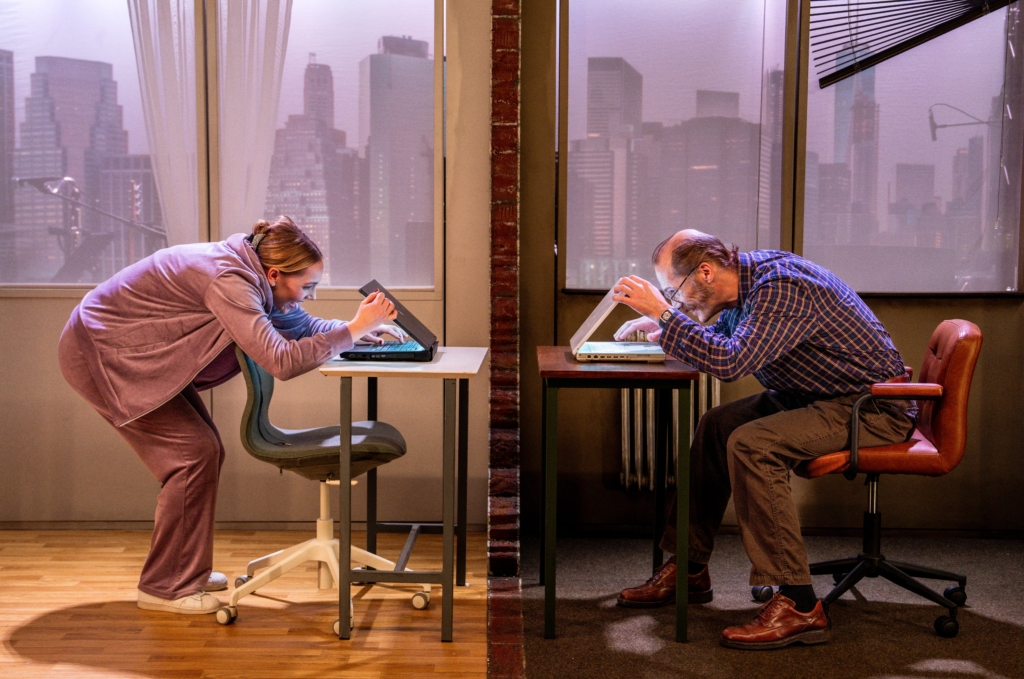 Föreställningen utspelar sig i en amerikansk stad år 2004. Nätdejting är vid denna tiden fortfarande något nytt och oprövat. I en låda stor som ett korridorsrum har scenografen Thomas Johansson skapat illusionen av två lägenheter sida vid sida.