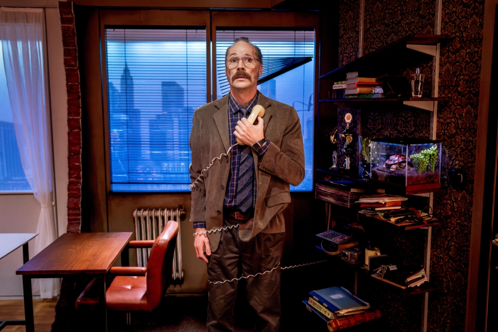 Föreställningen skiner dock i det outtalade och subtila: När Frank fastnar i telefonsladden, kastar menande blickar mot sköldpaddan Blixen, eller när ett seriöst fotografi på honom långsamt dyker upp i fönstret.