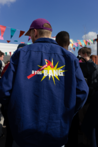 Det som annars är en parkeringsplats på LTH har förvandlats till ett byggområde. Överallt står massor av tält, mellan dem hänger färgglada vimplar och skyltar på karnevalens glada maskotar. Huvudingången till området är fullpackad med såväl karnevalister som journalister, alla lika nyfikna på att se karnevalens byggarbetsplats Fabriken, eller ”Bygg Bang” som det även kallas. Här på området kommer det byggas tågvagnar till karnevalståget, scendekor, barer och matstånd till karnevalsområdet samt rekvisita till diverse nöjen som spex och cirkusen – och den 21 maj ska allt stå färdigt.