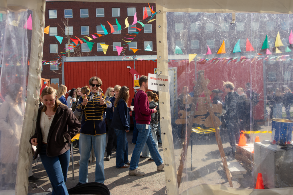 ”Välkommen in i karneversum” står det vid ingången till fabriksområdet för Lundakarnevalen 2026. På parkeringsplatsen utanför Kemicentrum på LTH har en hel byggarbetsplats vuxit fram. Här ska tusentals karnevalister jobba, såga, måla och hamra fram Celestialkarnevalen.