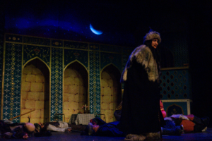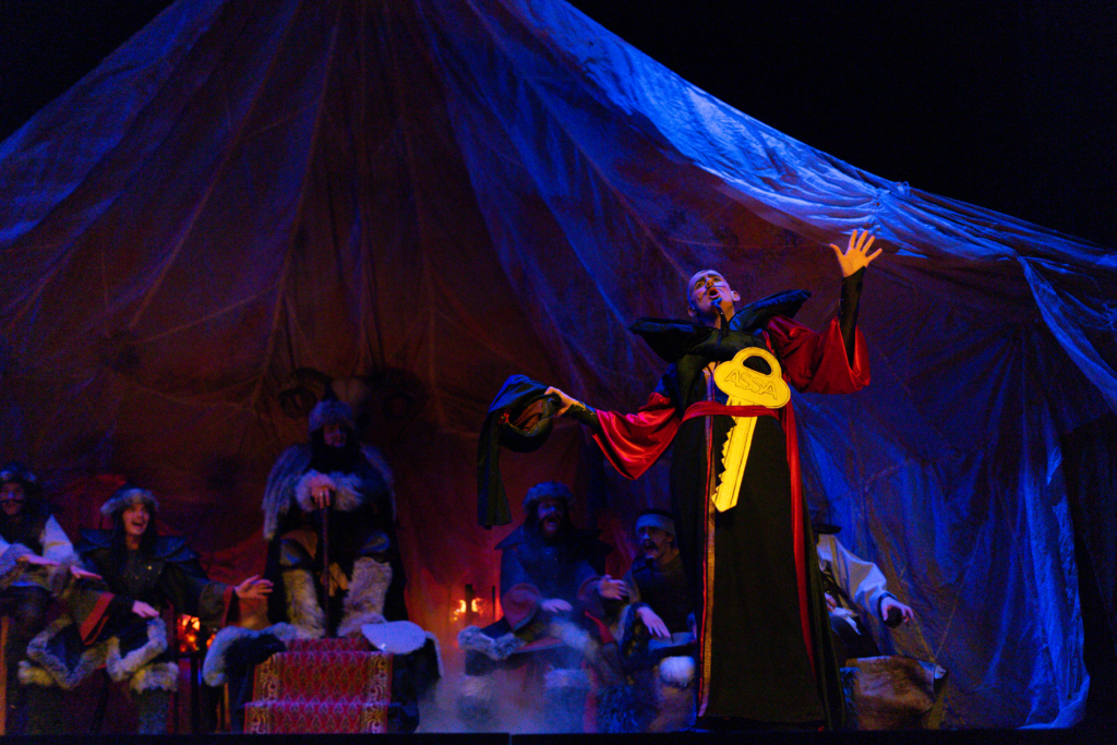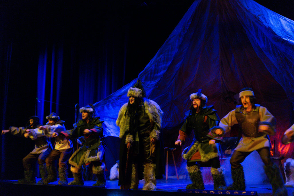 Under föreställningens gång matchar kostymerna och dekorerna perfekt. Publiken förtrollas av både det gråa, dunkla Karakorum och det förgyllda och ljusa Samarkand. Det är tveksamt om kostymerna är en historiskt korrekt porträttering av dåtidens mongoler, något som man snabbt glömmer glömmer man däremot snabbt när man får se spexarnas mästerliga koreografi, otroliga cirkuskonster och akrobatik.