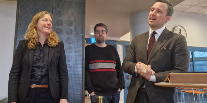 Centerpartiets partisekreterare Hannes Hervieu och riksdagsledamoten Stina Larsson besökte under fredagen LTH för att presentera rapporten Från Lund till egen lön.
